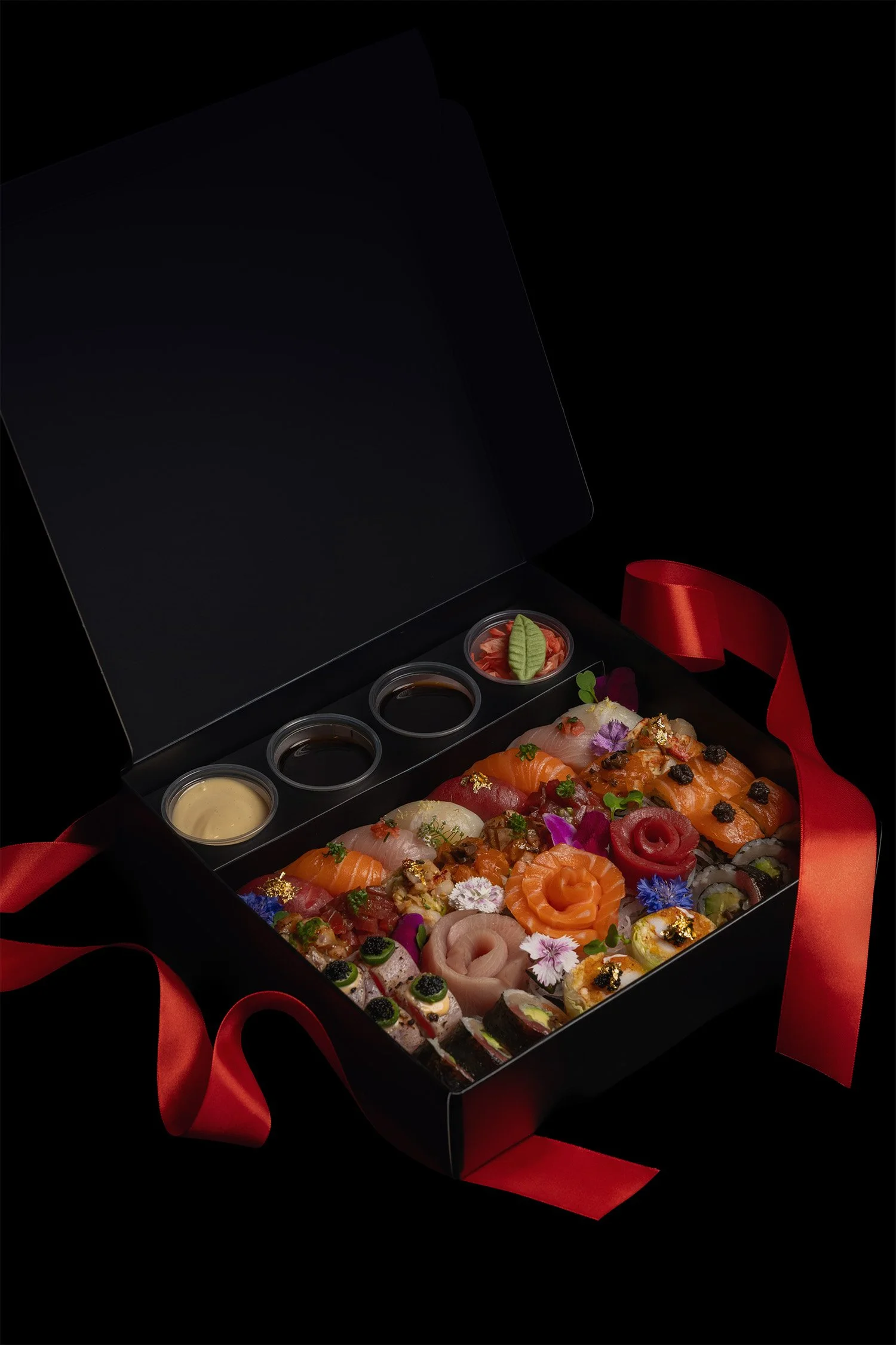 42 Chef’s selection including the classic syake sashimi rose, nigiri, and our specialty pieces.